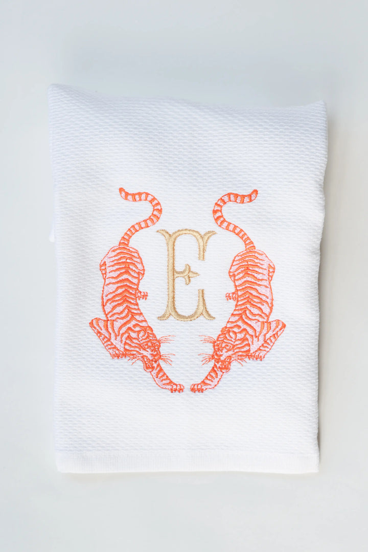Embroidered Chic Chinoiserie Tiger Guest Towel with Monogram